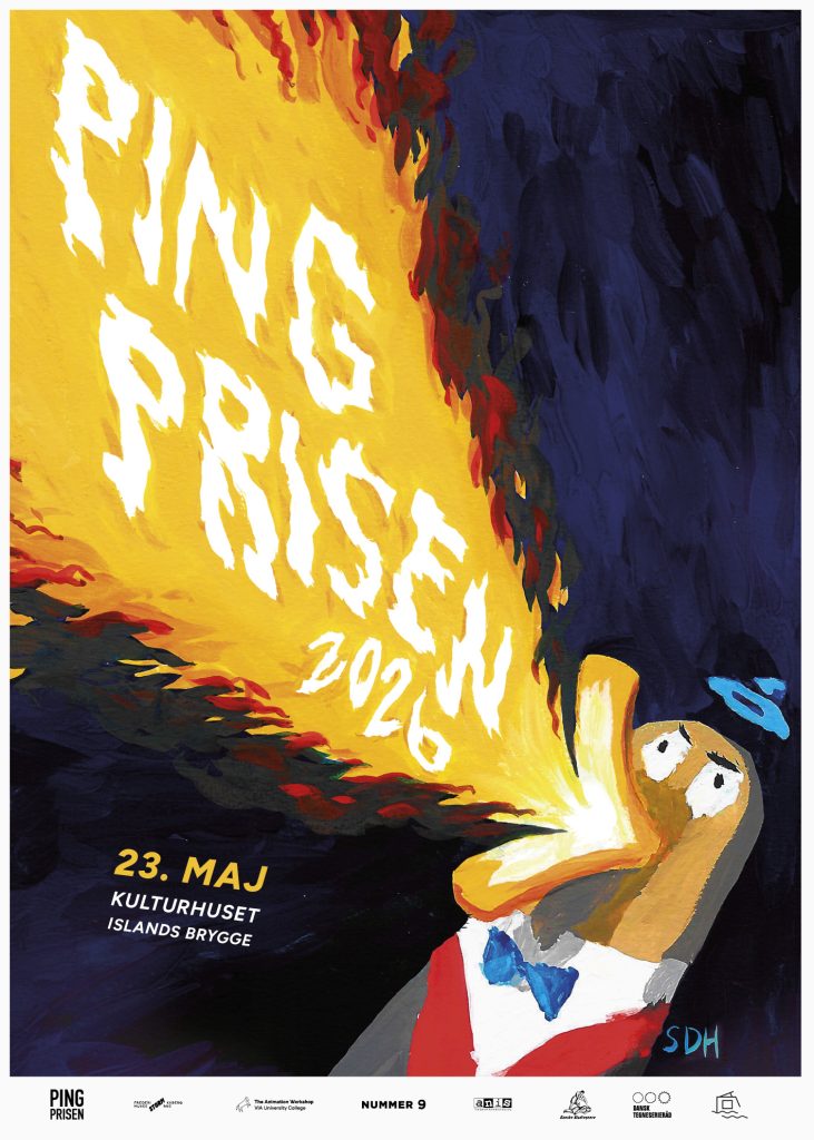 Pingprisen 2026 plakat af Signe Dagmar Herlevsen. Plakaten kan downloades her.
